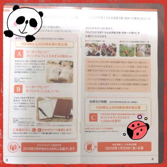 その三菱UFJさんから、初の株主優待の案内が届いたので、ご紹介しようと思います