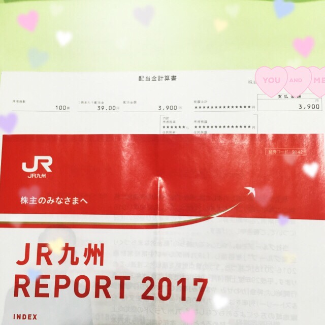 【配当金2017】JR九州旅客鉄道(9142)中間配当いただきました