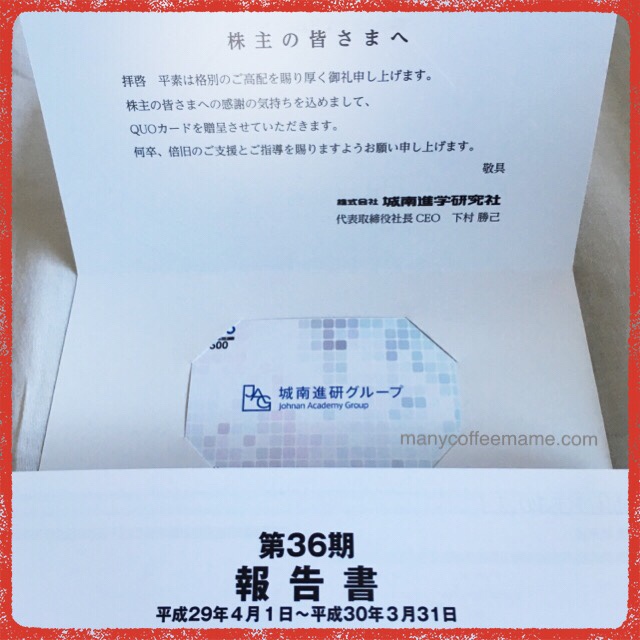 城南進学研究社(4720)から、株主優待のお品物が届きました〜