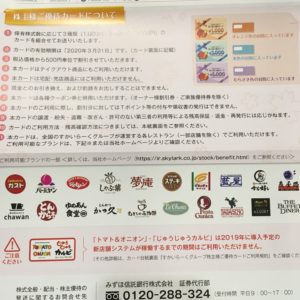【株主優待&配当金2019】すかいらーくHDより3名義分到着