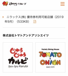 じゅうじゅうカルビトマトアンドオニオンでも優待券が使えるようになりました!